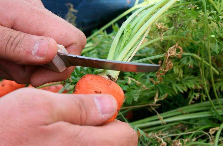 Процедуру обрезки проводят в день уборки овоща. Перед началом морковь очищают и просушивают. От соблюдения правил обрезки зависят срок хранения и качество корнеплода.