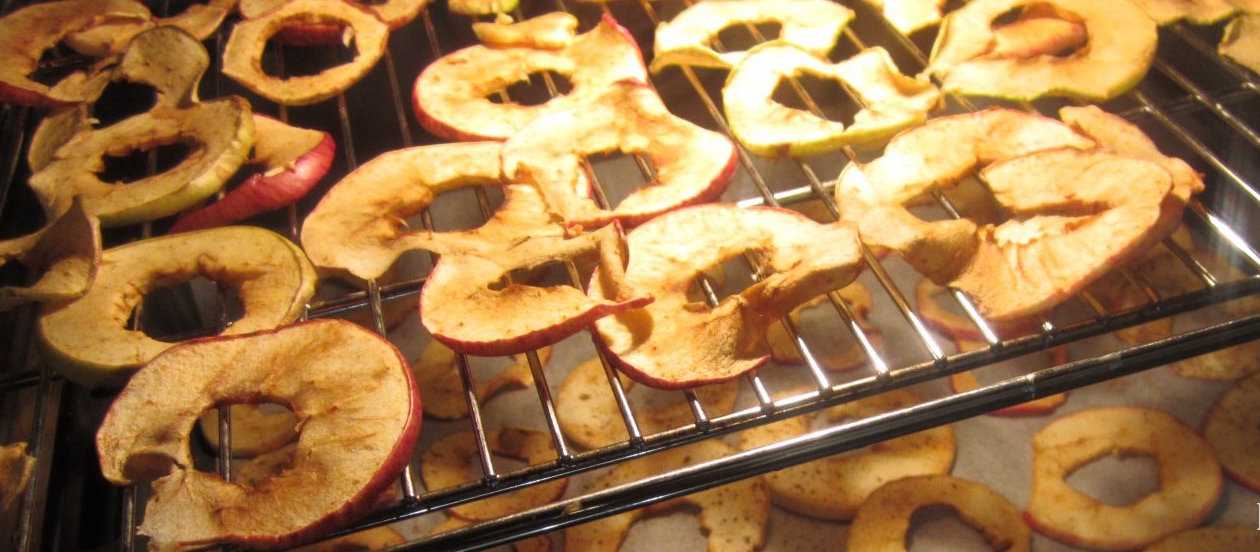 | Температура | Температуру требуется установить на 45-50 градусов. Духовой шкаф следует прогреть заранее. Далее в процессе сушки жар нужно постепенно увеличивать приблизительно до 75-95 градусов и продолжать сушку при слегка открытом устройстве. Тогда испаряющаяся влага из нарезки будет «выходить» из духовки. Примерно за 2 часа до окончания процесса температуру требуется снизить до первоначальных значений, чтобы нарезка не пригорела. | В процессе просушки яблочную нарезку нужно периодически аккуратно перемешивать, чтобы продукт просушивался равномерно. |