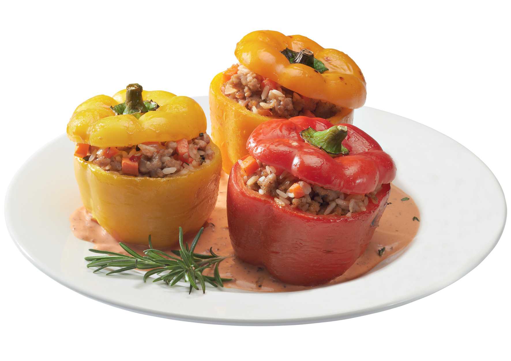 Любители картофельных изделий оценят оригинальное сочетание. В данном случае сладкий перец применяют в роли формы для запеканки.