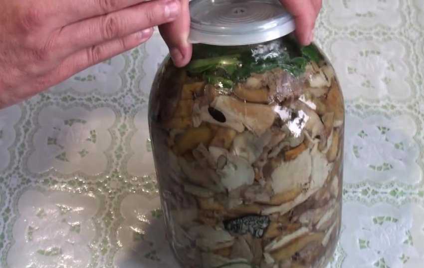 На 500 мл необходимо добавить половину чайной ложки уксуса и закатать банку. Благодаря кислоте грибы можно держать при комнатной температуре. Закатанную банку следует укрыть тёплым материалом и ждать полного остывания. После этого заготовку можно хранить при комнатной температуре.