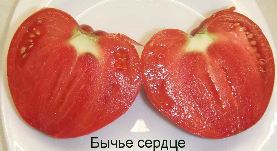 - Черное Бычье сердце — Помидоры имеют насыщенный бордовый оттенок с коричневыми подпалинами. Масса каждого плода в среднем, 700 грамм. Зреют помидоры очень долго. Мякоть у томатов нежная, семена практически отсутствуют. Данный вид сорта, высокоурожайный. Помидоры созревают единовременно.