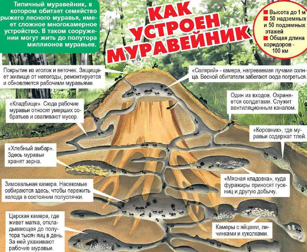 - Добытчики собирают пищу и складывают ее в специально предназначенные для этого комнаты муравейника.