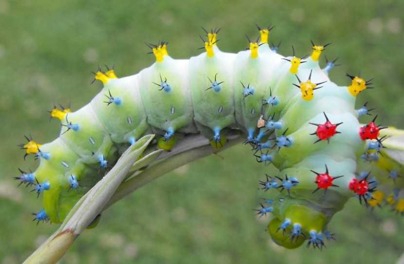 А самая длинная гусеница – индийской бабочки-павлиноглазки. Это гусеницы голубо-зеленого окраса, создается впечатление, что их тельца запорошены пылью белого цвета, они достигают 12 см.