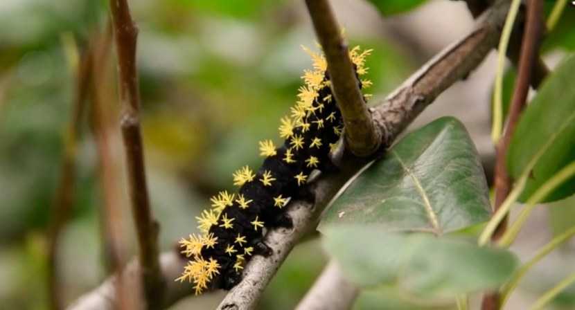 Окрас гусеницы имитирует цвета окружающей природы ареала обитания – таким способом гусеницы маскируются от врагов.