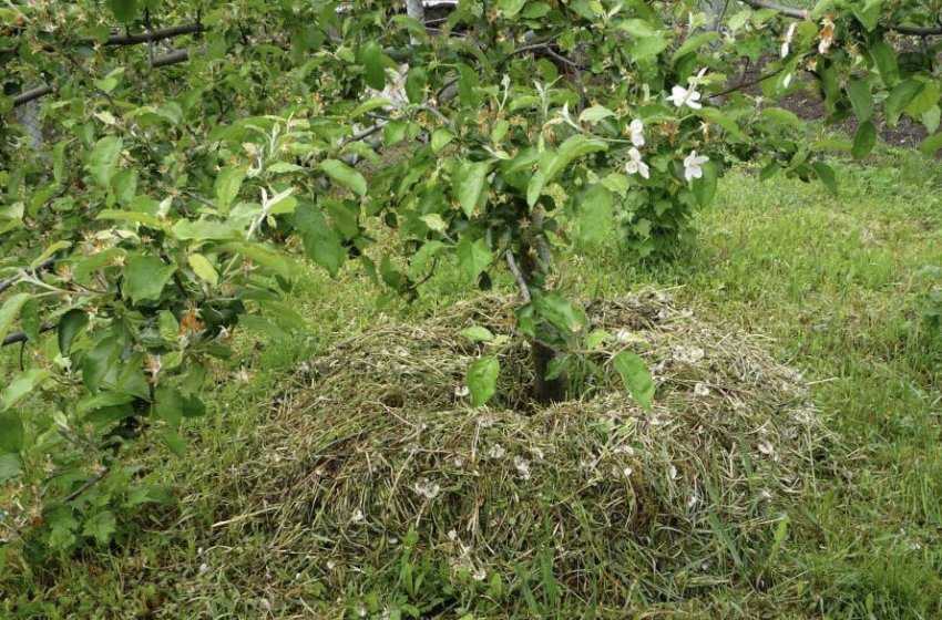 Для этого способа её выстилают толстым слоем вокруг стволов фруктовых деревьев. Таким образом создаётся своеобразный купол, который защищает корневую систему от негативного воздействия холода.
