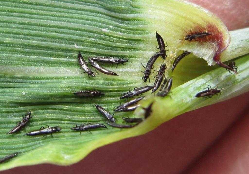 Чтобы понять, что пора бороться с трипсами, подбирая правильные и эффективные методы, нужно обнаружить их следы на культурах. Учитывая небольшие размеры вредителя, увидеть его без специального осмотра растений практически невозможно. Кроме того, трипсы удачно маскируются, прячась с тыльной стороны листа, не привлекая к себе внимания.
