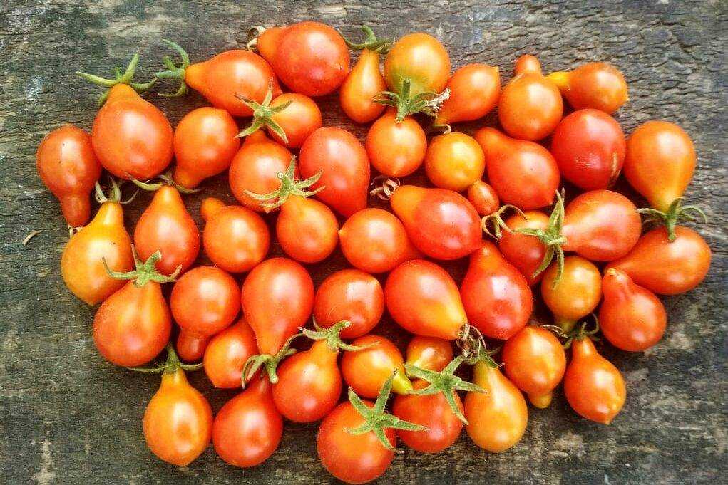 Грушевидные томаты очень аппетитно выглядят на кусте. Плоды плотные на ощупь, одномерные, с гладкой поверхностью. Пустот в середине помидор нет. Мякоть плотная, мясистая и сочная, со сладковатым вкусом ― у некоторых видов с кислинкой.