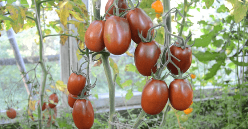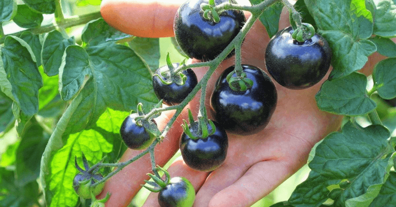 Черная гроздь F1 – раннеспелый (80 дней), индетерминантный, устойчивый к болезням, подходит для любого типа грунта. Нуждается в пасынковании и подвязке. С куста собирают до 6 кг иссиня-черных снаружи и красных в разрезе плодов весом до 60 г, на вкус больше напоминающих сливу. Ягоды хранятся до нескольких месяцев, пригодны для любых заготовок, кроме сока.