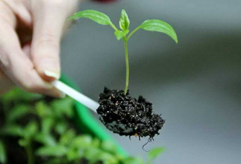 В индивидуальные емкости перец переносят на стадии 2-3 настоящего листочка. Если растения передержать, возрастает риск переплетения корней.