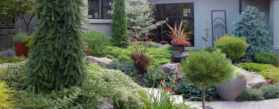 Уютная композиция из хвойных растений: схема посадки с названиями пород