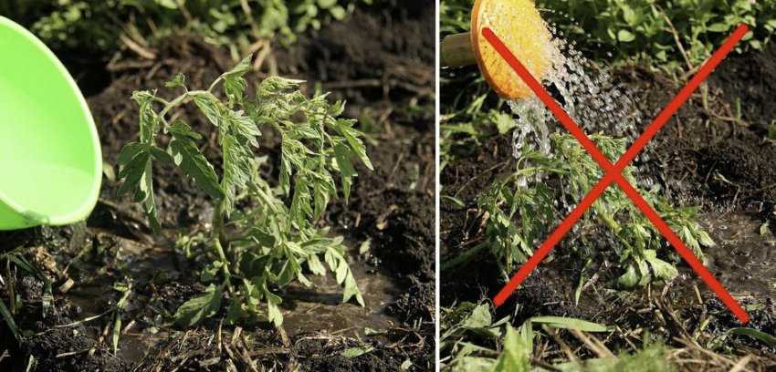 Томаты плохо переносят как сильную засуху, так и избыточный полив. Рекомендованные показатели влажности грунта 80% и воздуха 50–60%. После посадки рассады в грунт каждое растение следует полить 4–5 л воды. Следующий полив осуществляют через 3–4 суток.