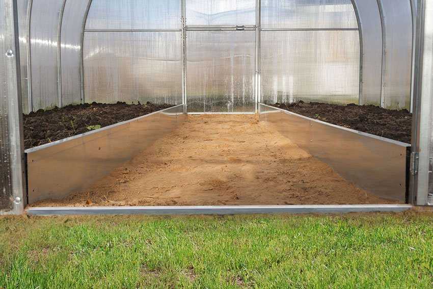 В теплице необходимо оборудовать грядки. В зависимости от региона (юг или север), а так же предназначения и особенностей грядок (тёплые, для выращивания ранних овощей), высота их может колебаться в пределах 20-80 см.
