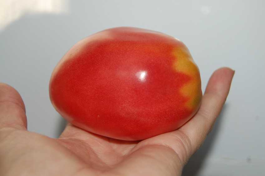 - Красноплодный сорт считается лучшим для консервирования и переработки. У него прекрасный вкус, сочетающий сладость с небольшой кислинкой и приятный томатный аромат. Даже у вызревшего плода возле плодоножки часто остаются зеленоватые или жёлтые пятна. Этот помидор высокоустойчив к фитофторозу.
