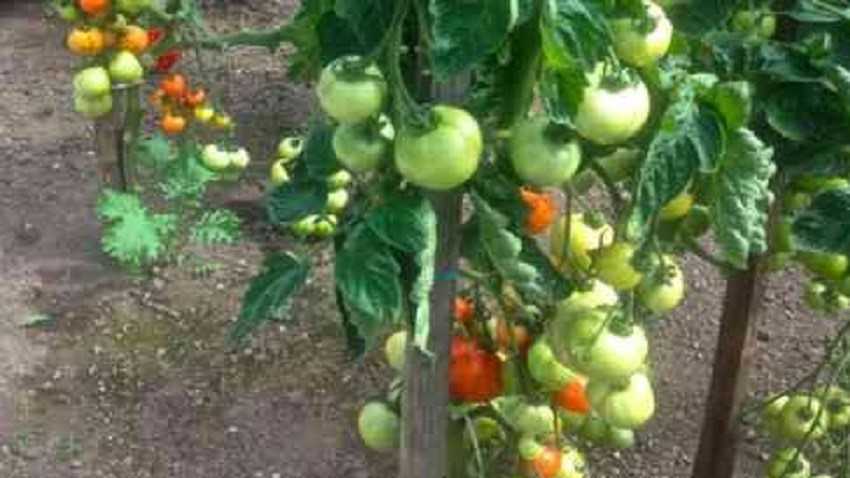 Подвязка. Количество плодов, а также их размер приводит к тому, что кусты нуждаются в подвязывании к опорам. В противном случае томаты будут лежать на земле.