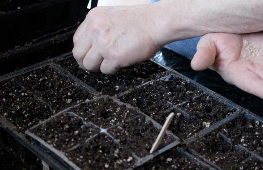 - ёмкости для высадки необходимо засыпать грунтом и сделать в почве небольшие углубления до 1 см;