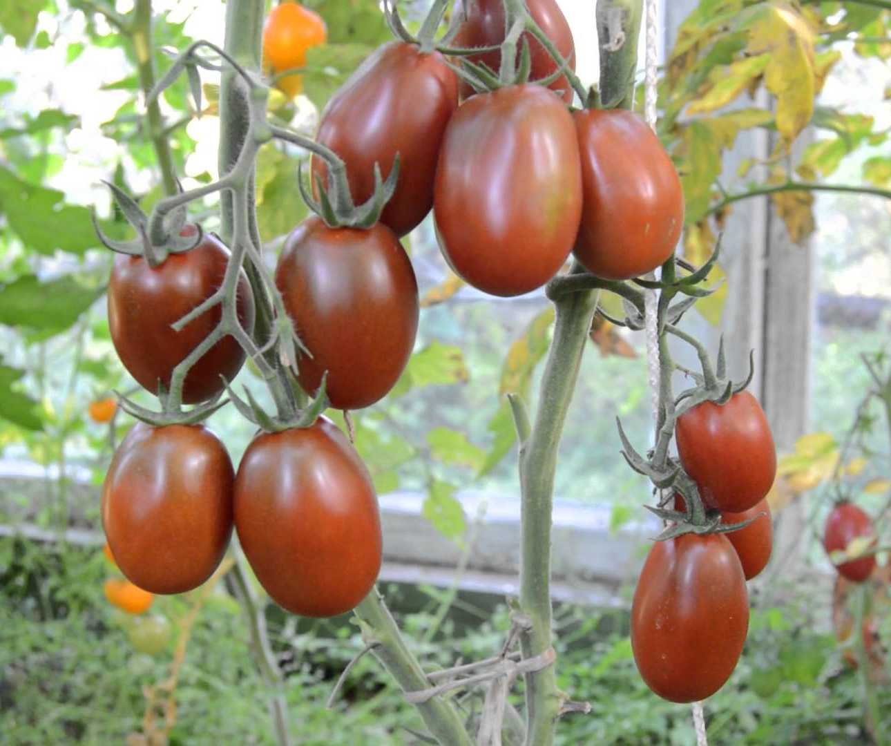 Выращивается в теплицах или под пленочным покрытием. Кусты высокие, индетерминантные, сильно ветвятся. Позволяет собрать до 8 кг помидор с квадратного метра. Подходит для консервирования без потери формы. Поверхность плодов гладкая, сливовидная, окрашенная в фиолетово-коричневый градиент. Вкус неплохой, но на любителя.