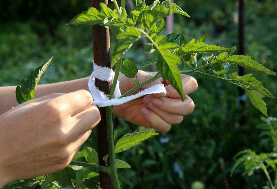 Кусты привязываются к шпалерам сразу после пересадки в теплицу. Нижние листья растения удаляют, чтобы куст лучше развивался. Также рекомендовано делать и с боковыми отростками. Если кусты не сформированы правильно, то теплица быстро превратится в джунгли.
