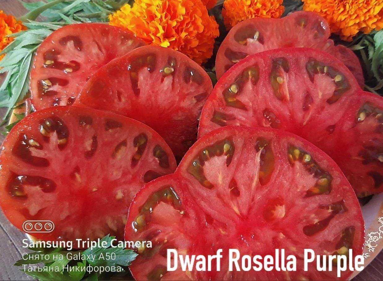 Сорт из проекта Гном томатный (Dwarf Tomato Project). Оригинальное название — Dwarf Rosella Purple. Родительскими сортами были Budai и Stump of the World. Представлен в поколении F9 в 2011 году. Сорт среднеспелый, детерминантный штамбового типа, высотой 60-80 см, в условиях теплицы может быть немно…