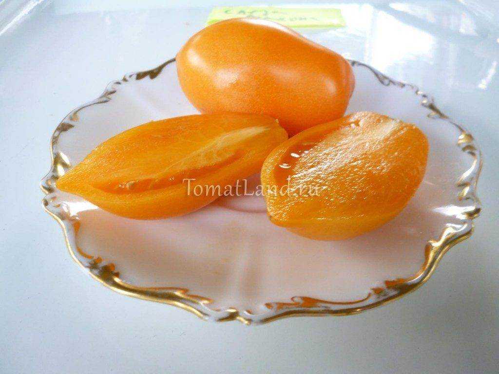 Томаты желтого цвета, созревает через 95-105 дней. Плоды хорошо хранятся, не растрескиваются, имеют хороший вкус.