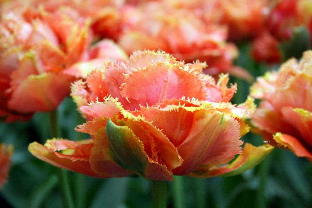 - попугайчатые тюльпаны — Apricot Parrot, Erna Lindgreen, Rococo, Texas Gold;