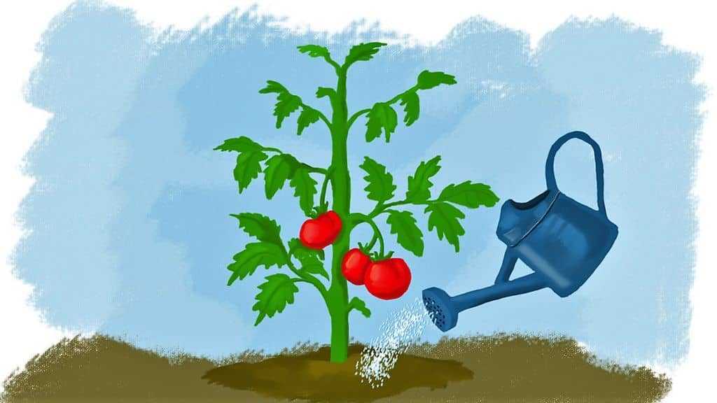 Часть питательных компонентов, томаты, выращиванием которых занимаются на поле или в огороде, берут из з плодородной земли, обогащенной минералами. При уходе за помидорами, посаженными в теплице, стоит больше внимания уделять удобрению. Когда кустики приживутся, на что уходит до 3 недель, в ведре воды смешивают 500 мл коровьего навоза, 20 г сульфата аммония и подливают под каждый томат.