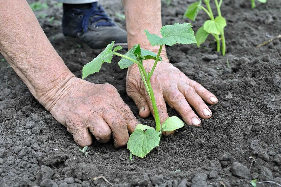 Пересадка огуречного сеянца из горшочка на грядку, пошагово: