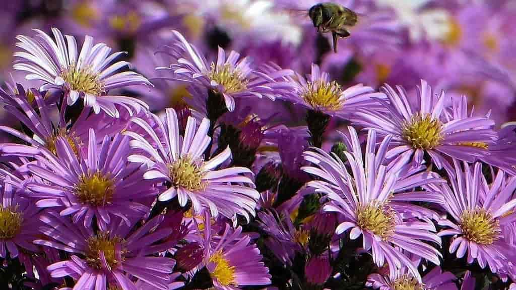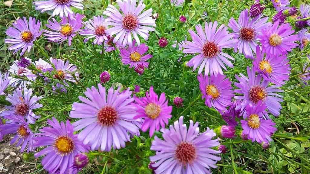Во время цветения гибрид астры Blue Star сильно похож на вереск