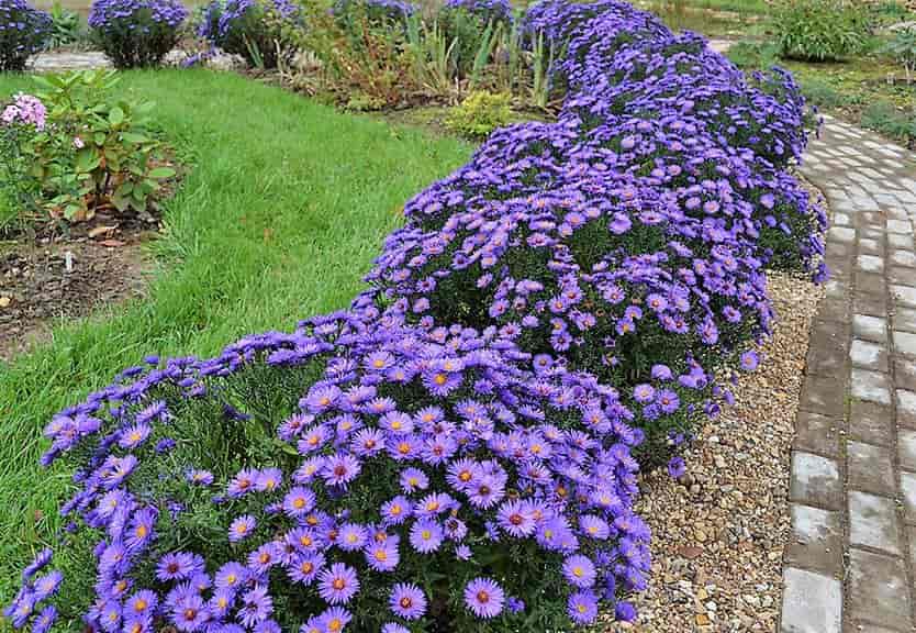 В группе кустарниковых многолетних астр встречаются и ползучие сорта. Карликовая разновидность может использоваться в качестве почвопокровника.