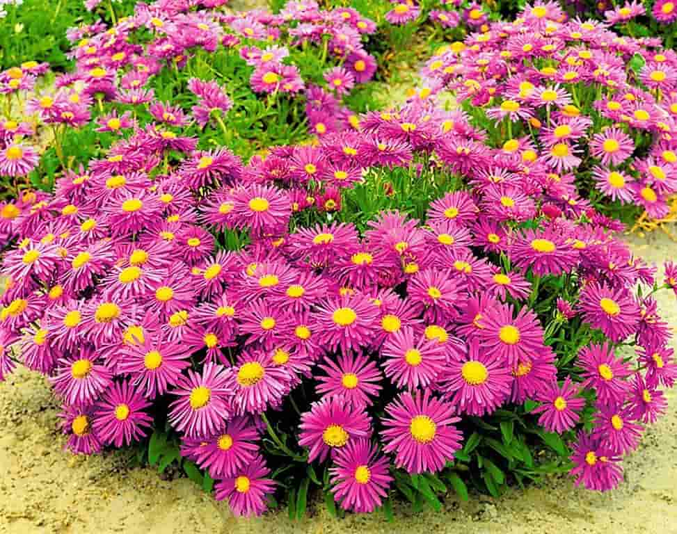 Цвет лепестков вересковидной астры Pink Cloud на клумбе определяется уровнем освещенности и иными условиями культивирования