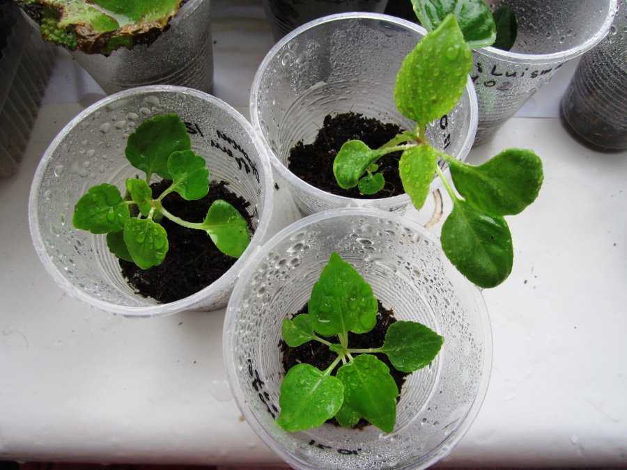 После прорастания всё следует пересадить в пластмассовую ёмкость с отверстиями. коробочка в таком случае играет роль теплицы. Далее пересадку стоит осуществлять уже после появления 2-3 листочков, пересадку необходимо проводит в рыхлую, хорошо увлажнённую почву. После окончательного появления всех всходов необходимо поддерживать высокую влажность.