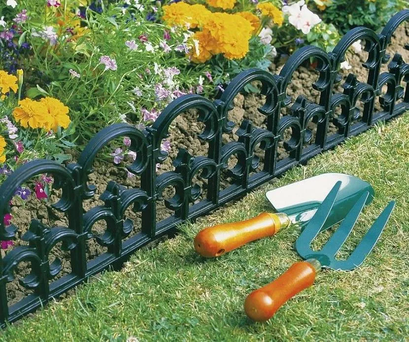 На заметку! Бордюры из пластика можно сочетать с каркасами из металла.