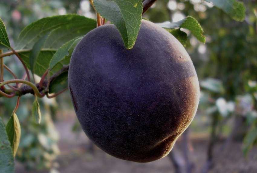 У чёрного абрикоса плод мельче обычного, опушён, имеет почти чёрный цвет