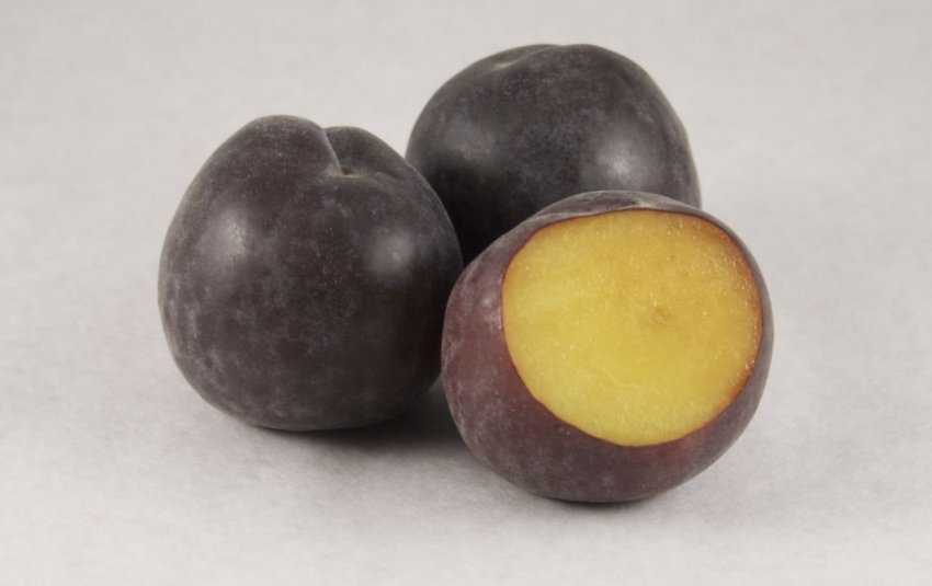 Фрукты небольшие, кругло-овальные, чернильного или тёмно-пурпурного цвета. Тактильно кожура мягкая и бархатная. Сам плод сочный с нотками абрикоса. Фрукты могут хранится в свежем виде до четырех месяцев, если были собраны недозрелыми.
