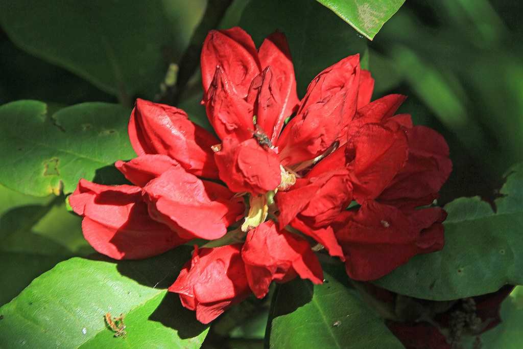 Этот вид рододендрона отличается тем, что не сбрасывает листья на зиму, а они всего лишь сворачиваются, возвращаясь весной к исходной форме.