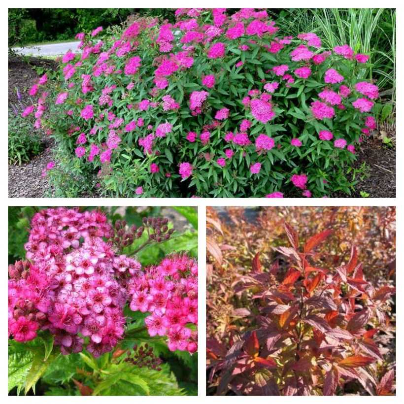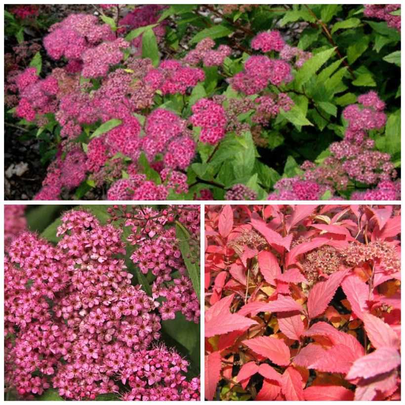 Скрещенный вид японской и белоцветковой спиреи. Высота кустика – до 80 см. Окраска от розоватого до насыщенно-красного.