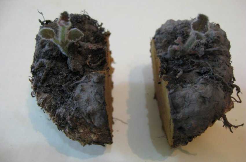 Полученные кусочки клубней нужно поместить во влажный торф и следить за тем, чтобы в процессе укоренения грунт всегда оставался немного влажным. Росткам рекомендуется организовать температурный режим в пределах +9…+11°С.