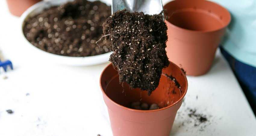 - Затем помещают в новый горшок и засыпают подготовленным субстратом, который приобретают в специализированном магазине либо готовят самостоятельно из половины лиственной земли и половины песка, торфа и навоза.