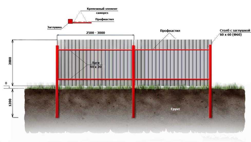Любой забор (в схематическом виде) состоит из нескольких элементов: