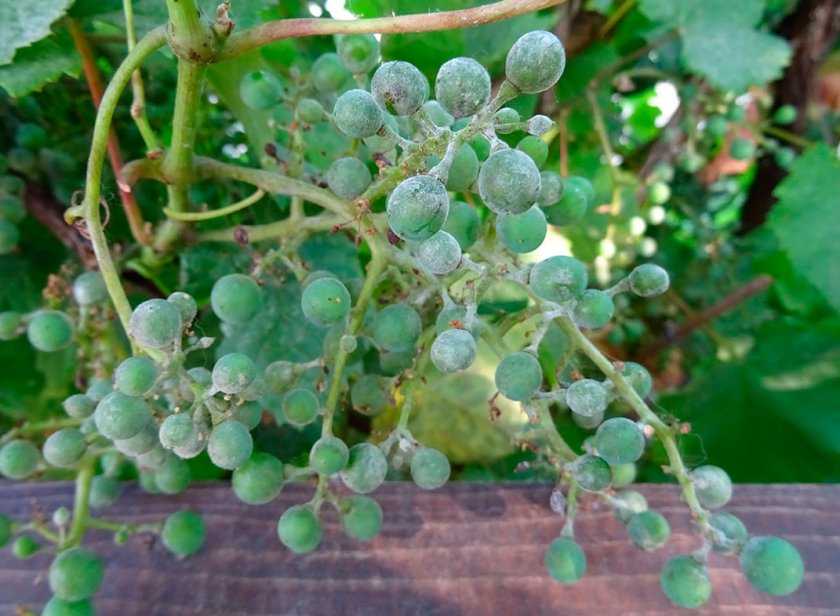 Оидиум является грибковой инфекцией, которая поражает листовые пластины, приводя к образованию на них серого налёта и к скручиванию. Стебли замедляют свой рост. В запущенном состоянии оидиум распространяется на грозди и цветки.