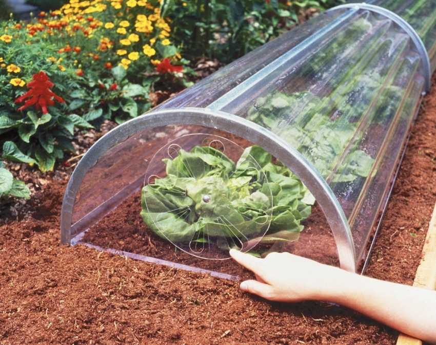 В первую очередь разберемся с размером. Большой «хлебница» не бывает – обычно в них выращивают цветы, зелень или небольшое количество овощей. Внешне они напоминают арочную теплицу, но с подъемными стенками.