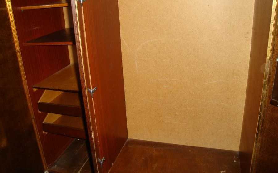 Раньше деревянную мебель делали очень качественно. Перед обновлением удалите пыль сухой тряпкой. Затем проверьте крепеж, и если он сломан, его надо починить или заменить. Внутри шкафа хорошо было бы выполнить обработку антибактериальным средством, более бюджетный вариант – простой уксус. Он уничтожит неприятный запах.