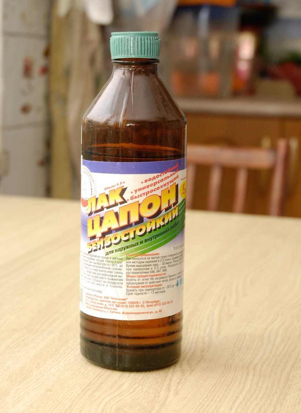 Цапонлак обеспечивает долговечное покрытие, устойчивое к жаре, холоду и прочим неблагоприятным воздействиям. Данное покрытие с трудом поддается растворителям, так что старайтесь не забрызгать мебель и кожу, а если это произошло, вытирайте их немедленно. В продаже есть цапонлак черного, синего, красного, желтого и других цветов. Если нужного вам оттенка не нашлось, можете купить бесцветное средство и добавить в него краситель.