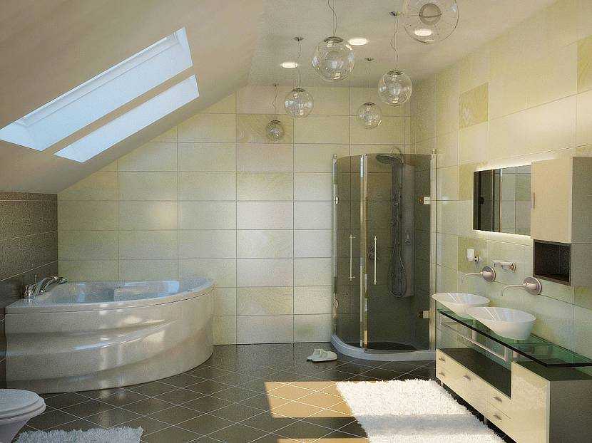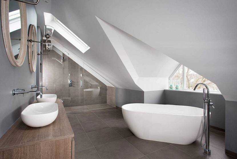 Минималистический стиль ванной комнаты на чердакеИсточник yandex.net