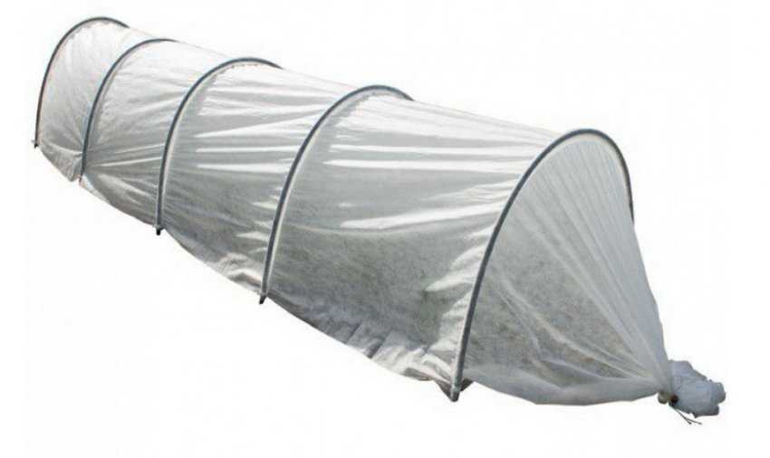 Эти два парника имеют очень схожую конструкцию. Каркас у обоих набирается из гибких пластмассовых трубок с сечением 20 мм. Они имеют стандартные габариты: 800 мм высота, от 110 до 120 мм ширина и три варианта длины: 4, 6 и 8 м. В качестве укрывного материала используется хорошо зарекомендовавший себя «Агроспан 60», отлично защищающий растения от ультрафиолета. Обе модели можно назвать очень устойчивыми, так как дуги каркаса вшиваются в полотно.