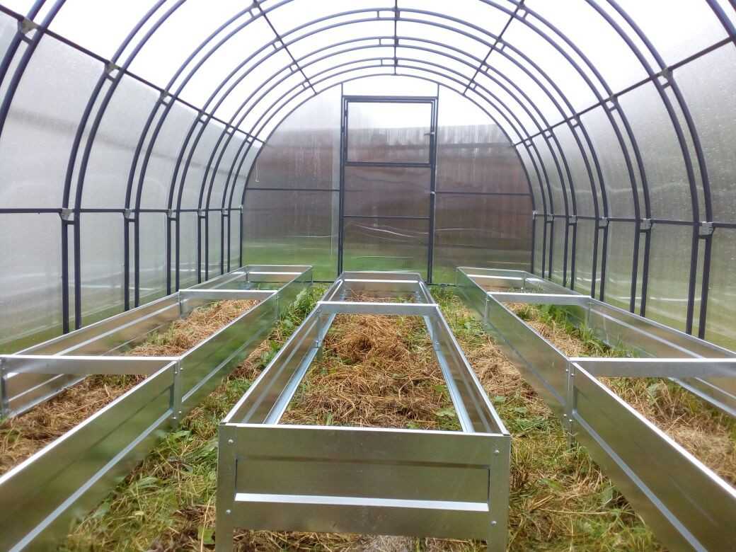 При обустройстве теплицы внутри широко используют высокие грядки, которые имеют ряд преимуществ: