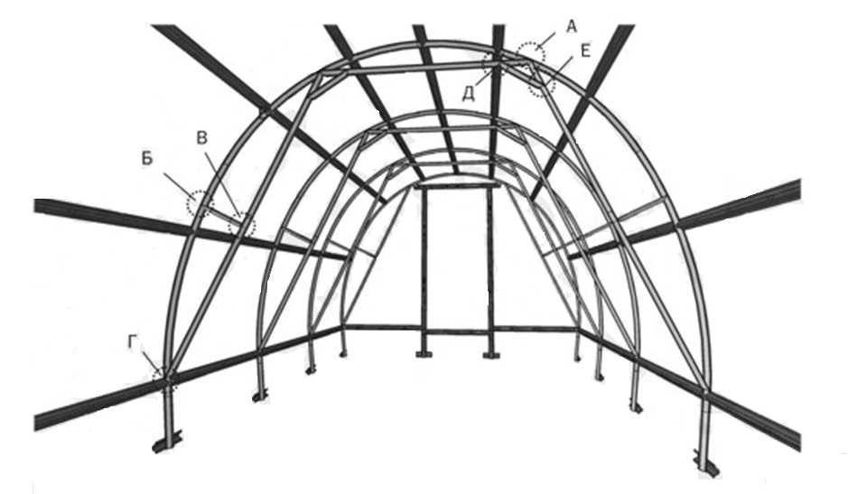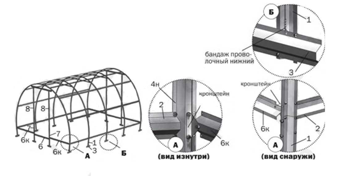 Наличие поперечных и продольных стяжек (перемычек). Дополнительные стяжки, особенно расположенные в верхней части теплицы, позволяют каркасу стать крепче и надежнее.