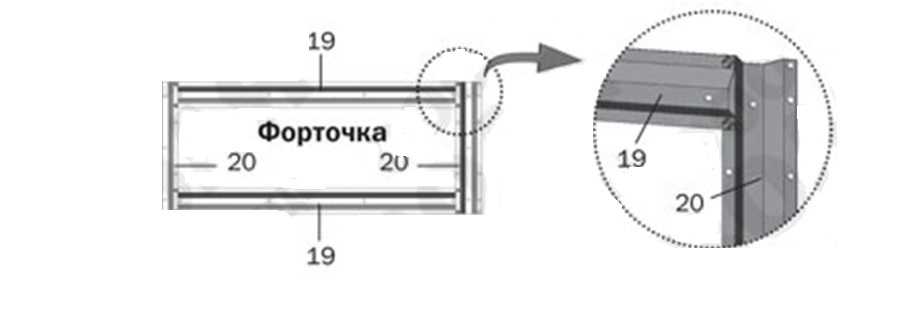 Шаг 9. Соберите торцевые двери из деталей: дверной вертикальной (12), дверной горизонтальной (13), дверной диагонали (14), дверной диагональной накладки (15). Форточки собирайте из горизонтали форточки (19) и вертикали форточки (20).