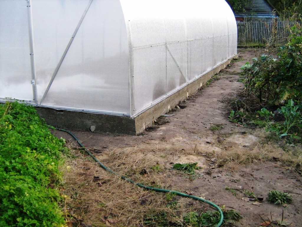 Быстрый процесс разрушения и следовательно не большой срок службы. Когда вы строите теплицу на фундаменте, то такая конструкция позволяет материалу каркаса не соприкасаться с землей