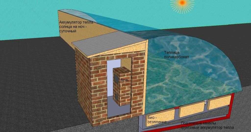 - наличие у одной из стен своеобразного тамбурного помещения, ограничивающего доступ холодного воздуха к находящимся внутри растениям;