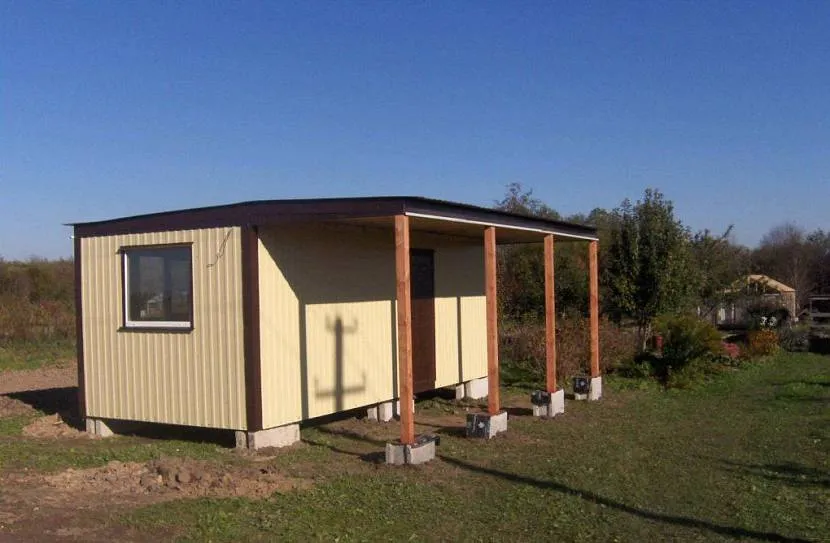 - Мобильные варианты времянок располагайте возле выезда, откуда в последующем будет удобно производить погрузку и вывоз бытовки.